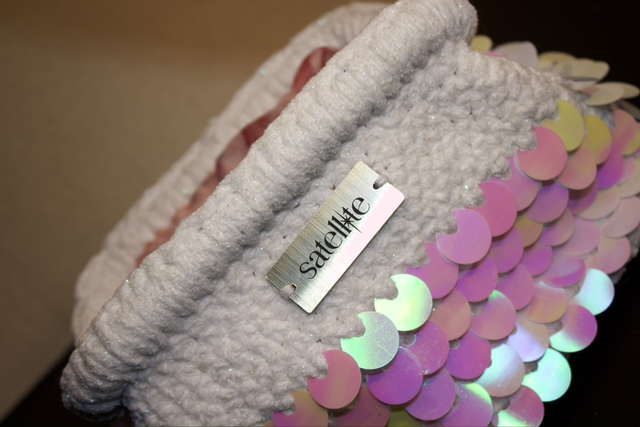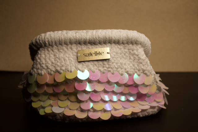 Clutch bianca con paillettes multicolore. Foderata. Misura 24x15 cm.