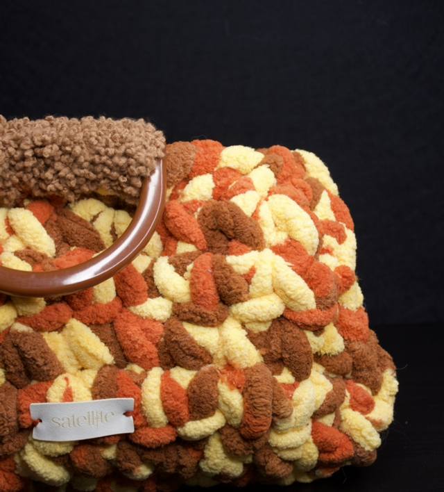 Borsa con manico in morbida ciniglia multicolore. Misura 33x19 cm.
